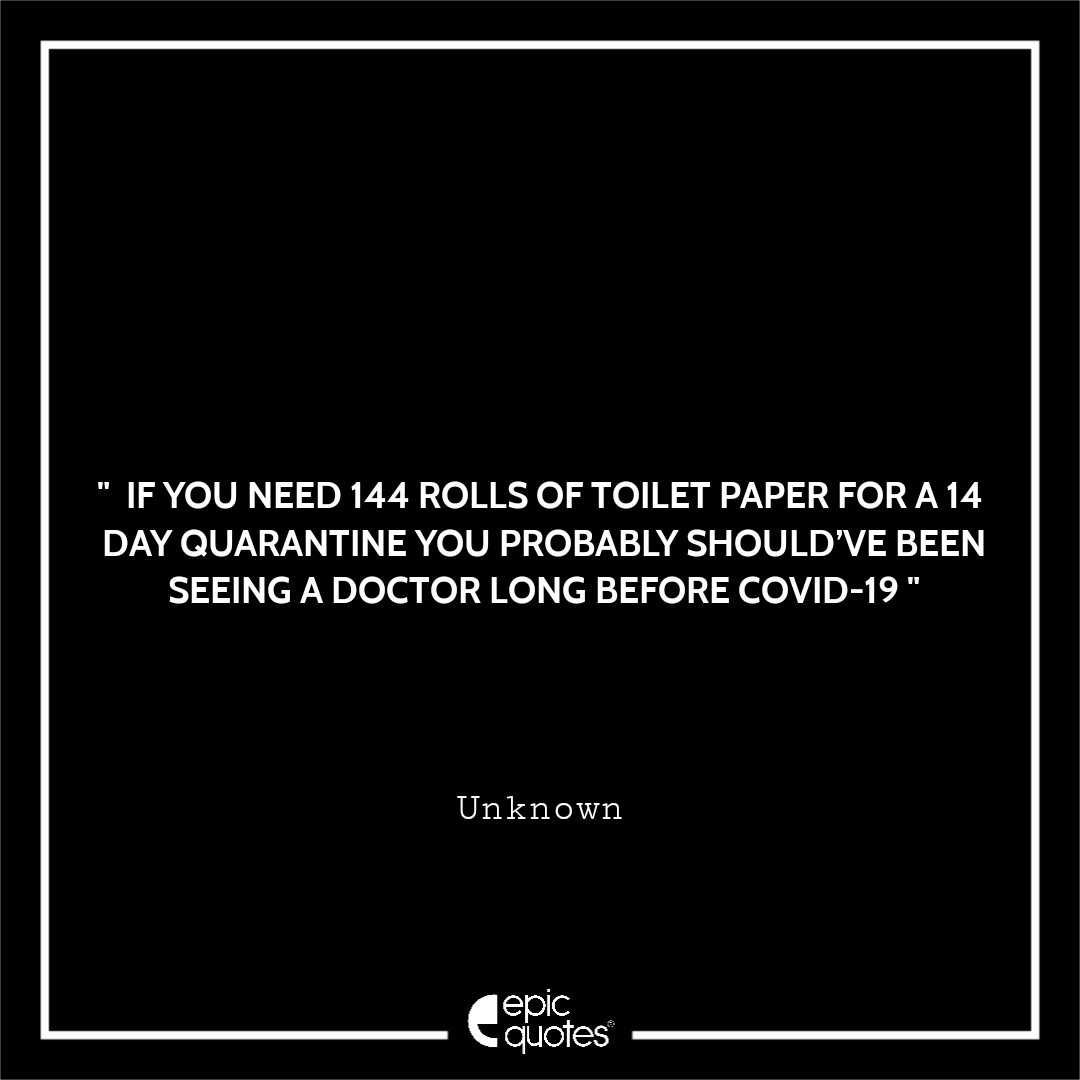 8 If you need 144 rolls of toilet paper for a 14 day quarantine you probably should’ve been seeing a doctor long before COVID-19.