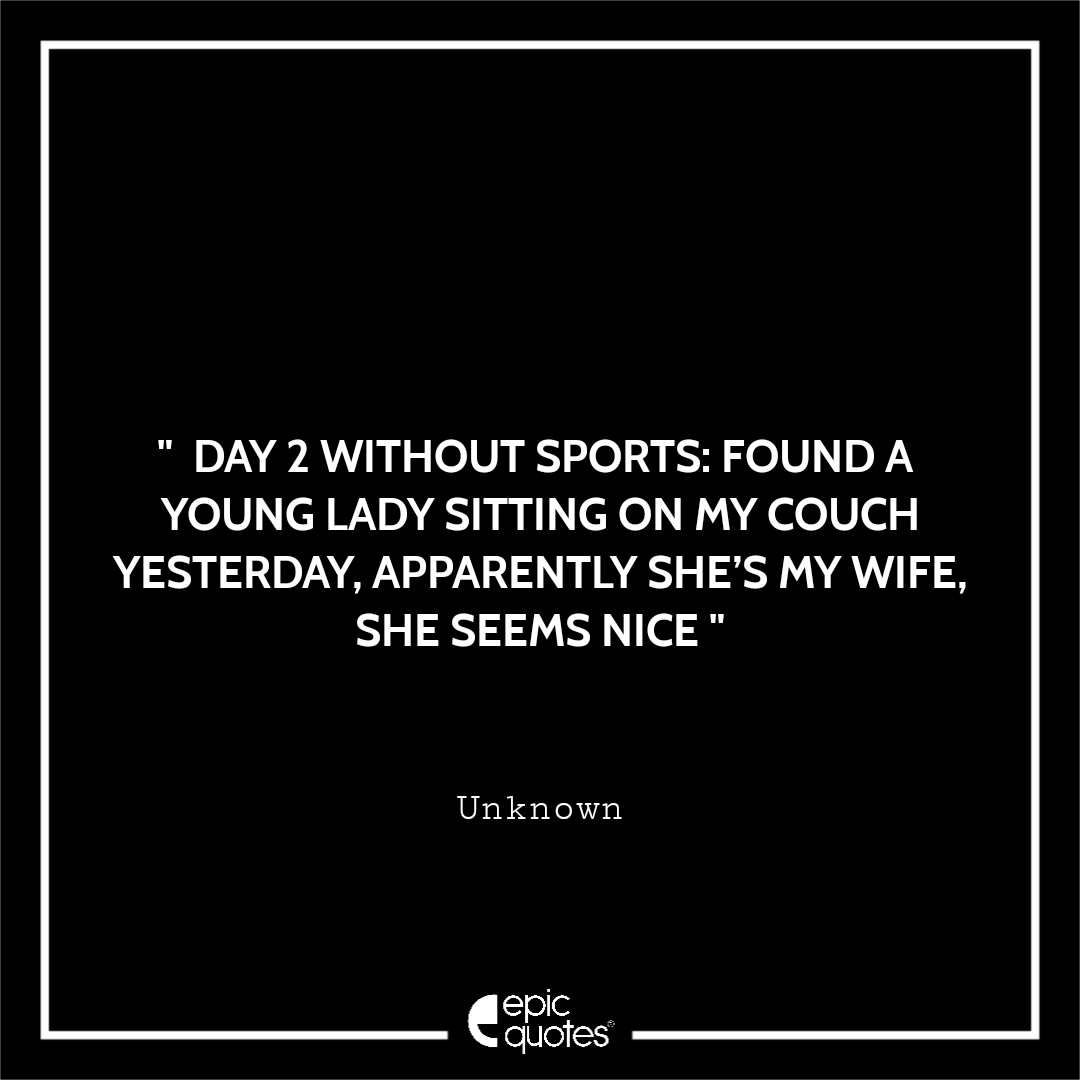 7. Day 2 without sports: Found a young lady sitting on my couch yesterday. Apparently she’s my wife. She seems nice.