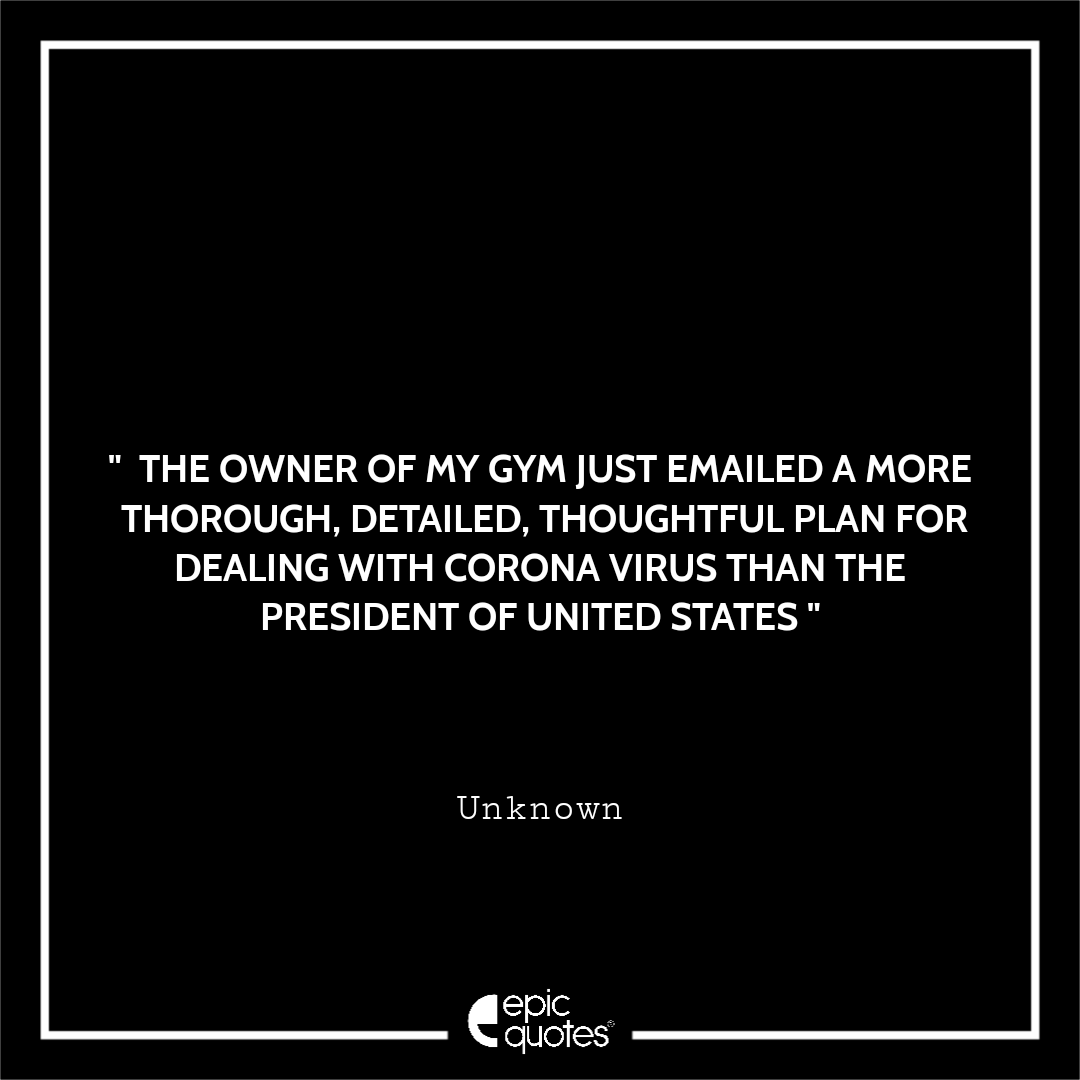 6 The owner of my gym just emailed a more thorough, detailed, thoughtful plan for dealing with corona virus than the President of United States