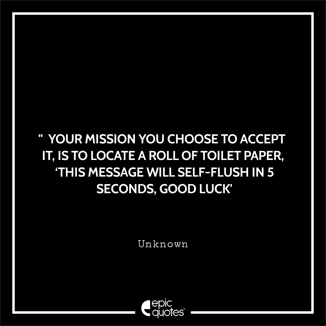 3 Your Mission you choose to accept it, is to locate a roll of toilet paper. ‘This message will self-flush in 5 seconds. Good luck