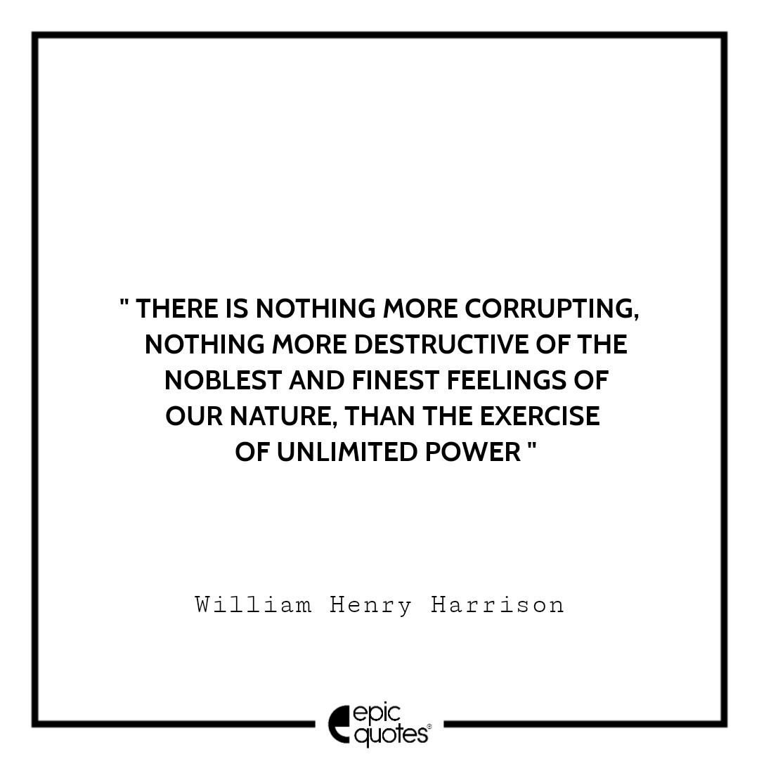 2. There is nothing more corrupting, nothing more destructive of the noblest and finest feelings of our nature, than the exercise of unlimited power. -William Henry Harrison
