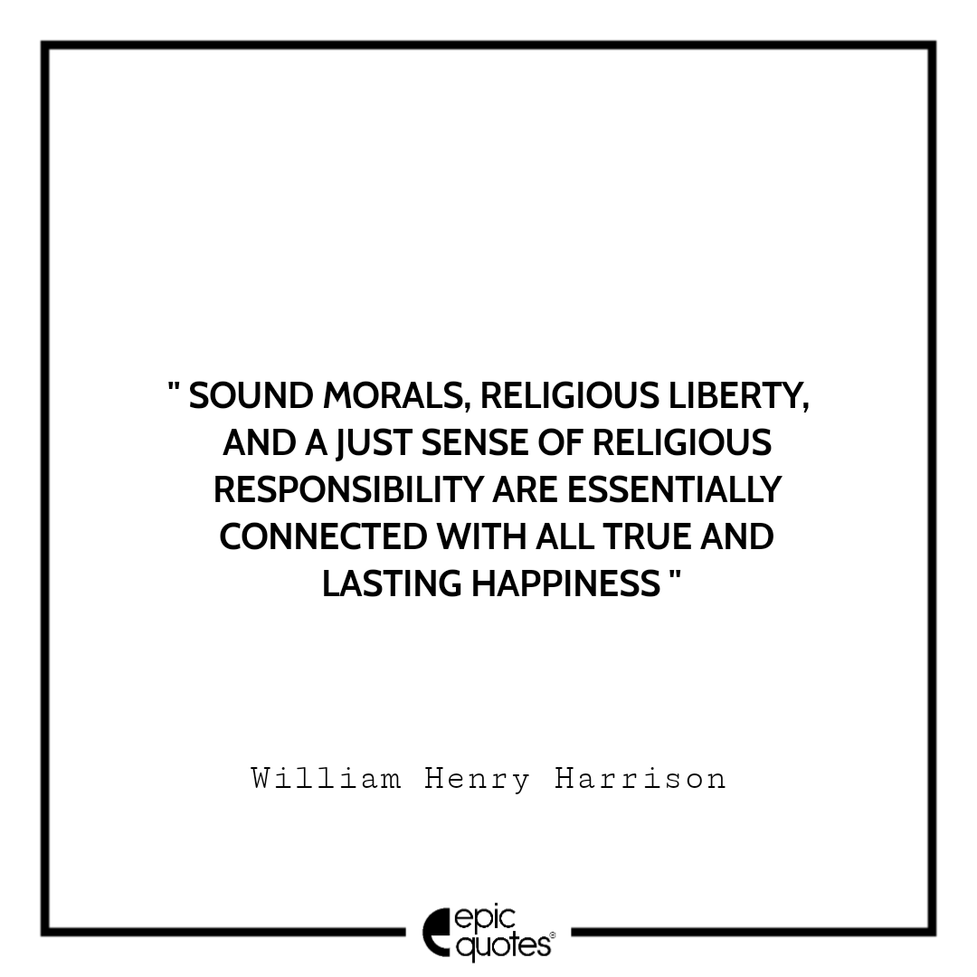 5 Sound morals, religious liberty, and a just sense of religious responsibility are essentially connected with all true and lasting happiness. -William Henry Harrison