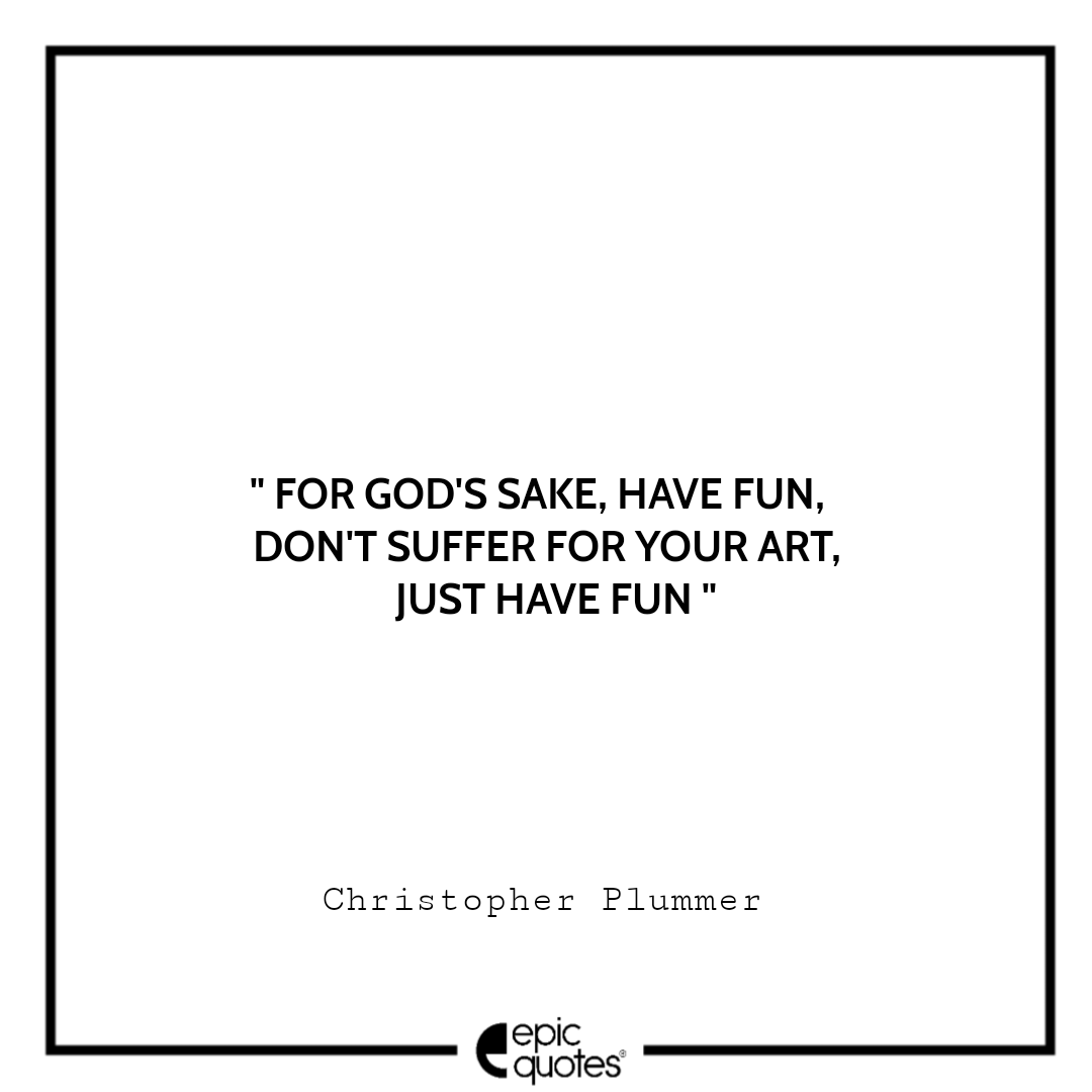 1 . For God’s sake, have fun, Don’t suffer for your art, Just have fun. -Christopher Plummer