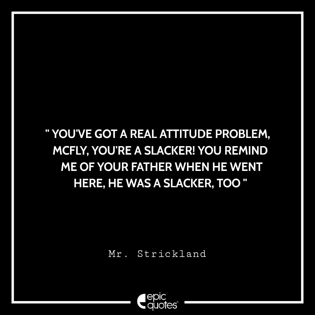 9. You’ve got a real attitude problem, McFly, you’re a slacker! You remind me of your father when he went here. He was a slacker, too. –Mr. Strickland