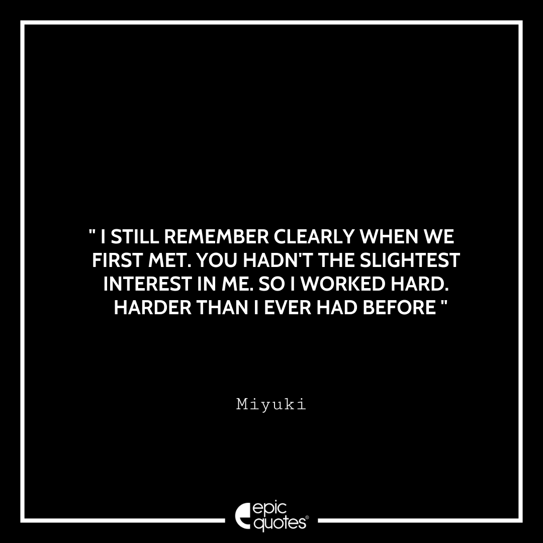4. I still remember clearly when we first met. You hadn’t the slightest interest in me. So I worked hard. Harder than I ever had before. -Miyuki