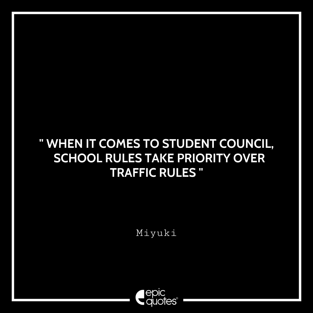 5. When it comes to Student Council, School rules take priority over Traffic rules. -Miyuki