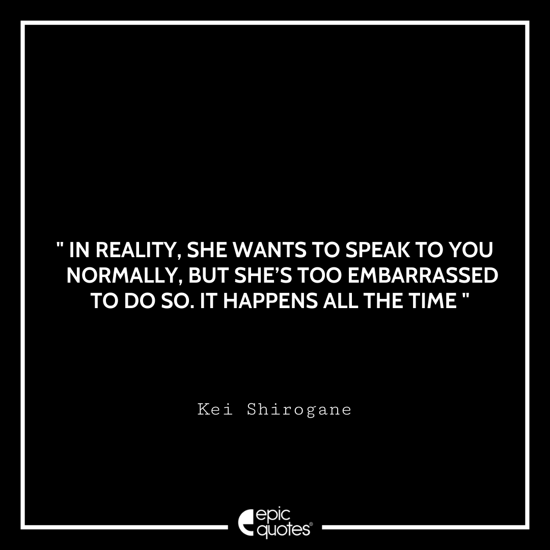 7 In reality, she wants to speak to you normally, but she’s too embarrassed to do so. It happens all the time. -Kei Shirogane