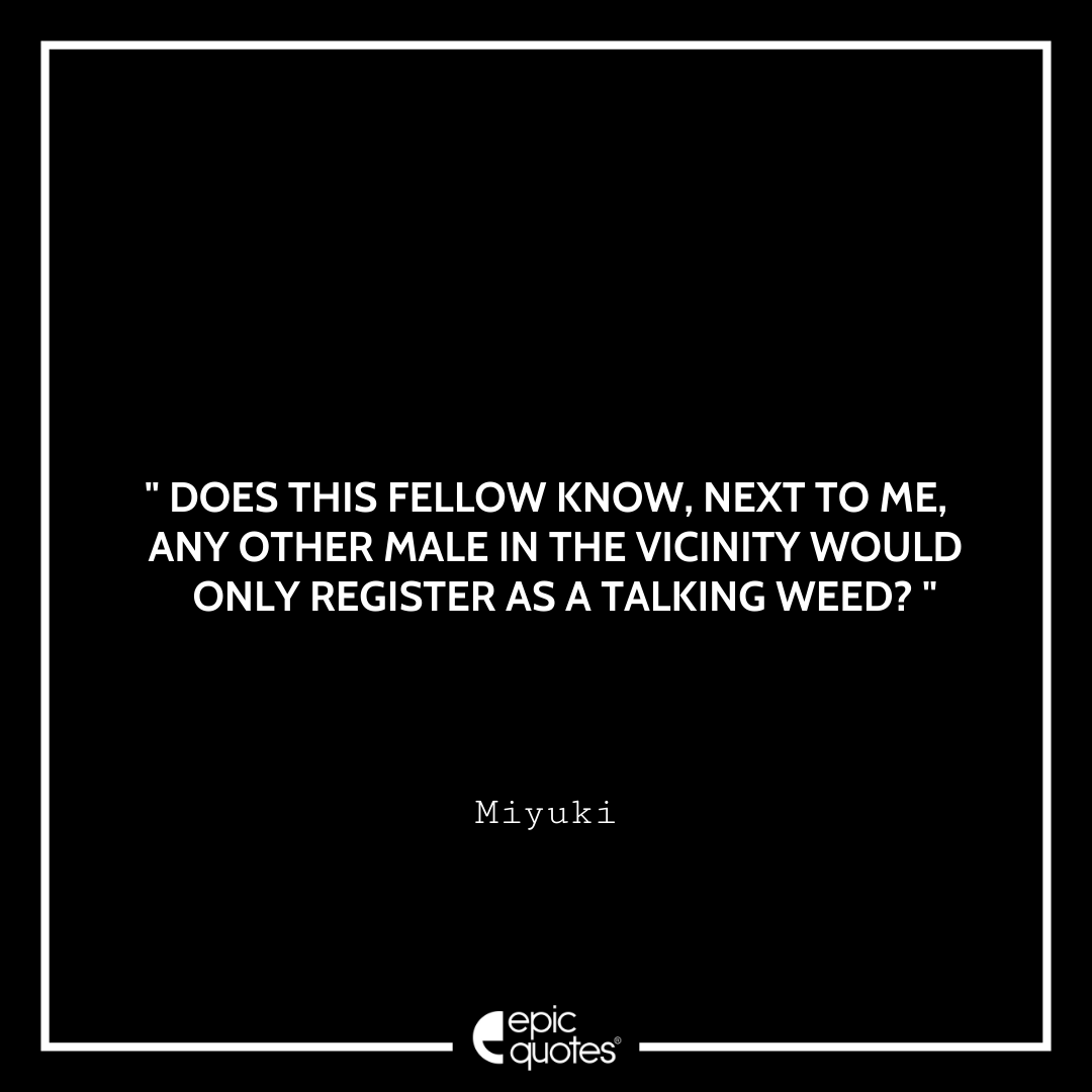 9. Does this fellow know, next to me, any other male in the vicinity would only register as a talking weed? -Miyuki