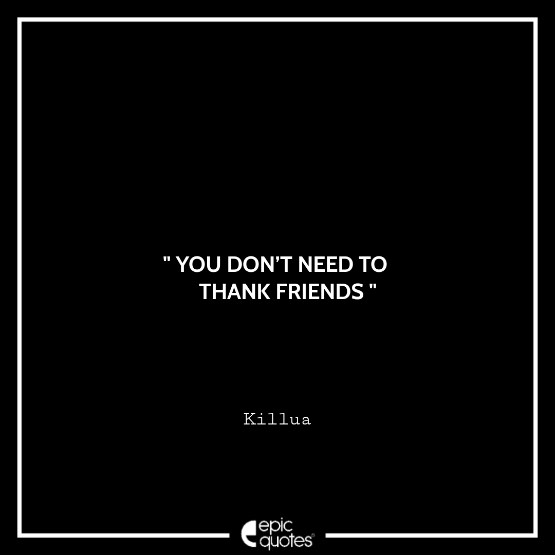 True friends do not thank each other. They show their gratitude through their actions. As a friend, it is your duty to unconditionally help each other and have each other’s back. This is the true essence of friendship.
