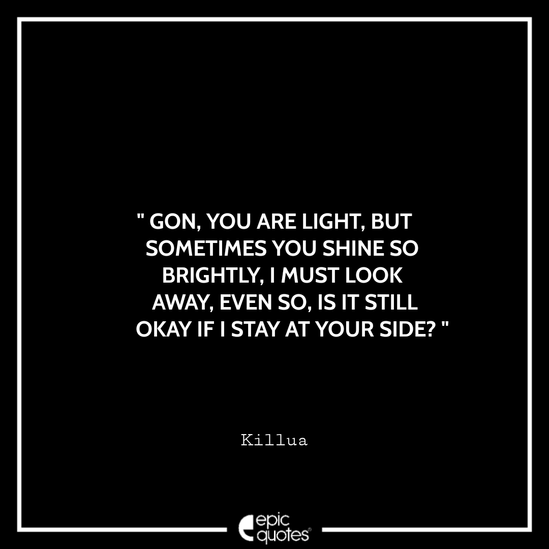 5. Gon, you are light, But sometimes you shine so brightly, I must look away, Even so, is it still okay if I stay at your side? -Killua