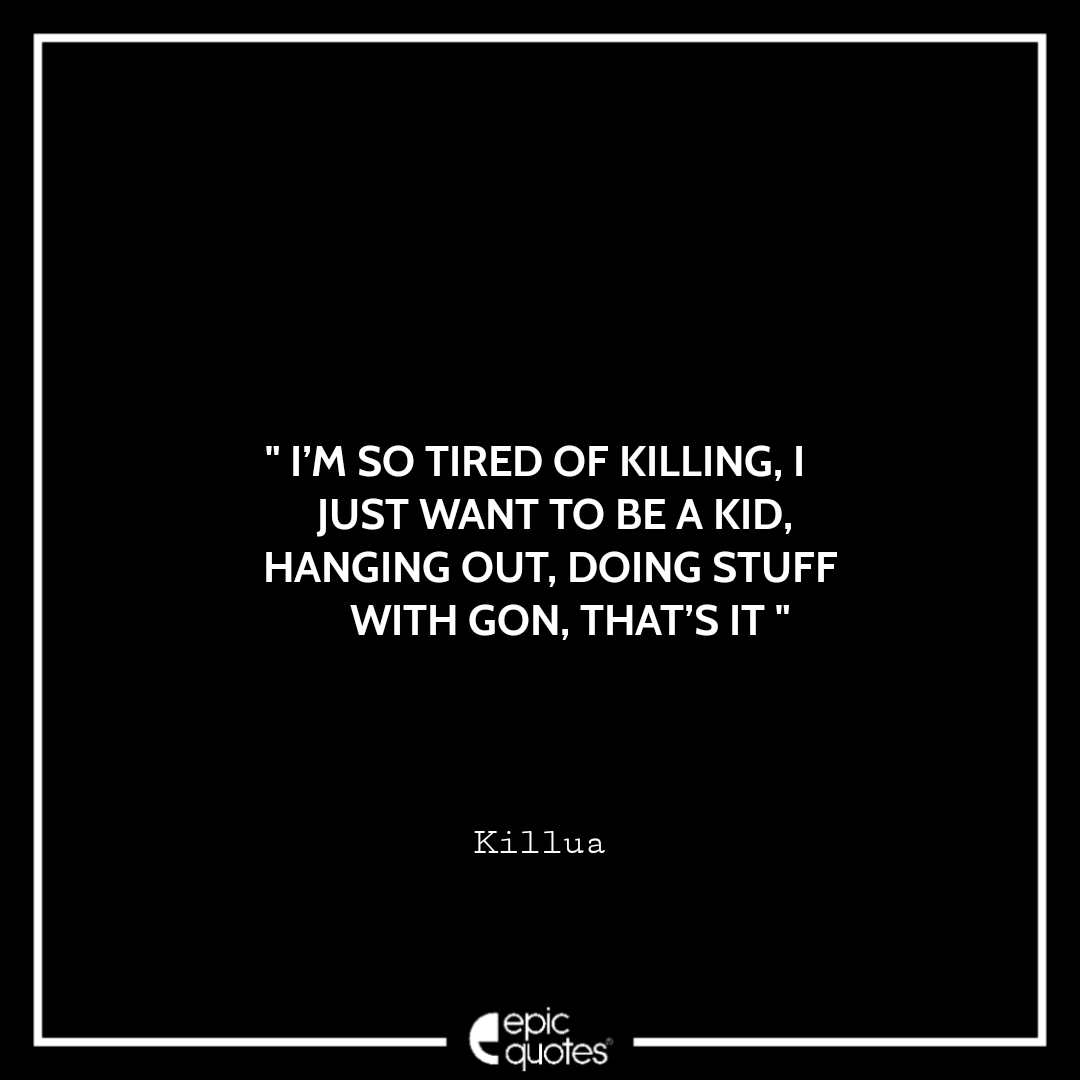 6 I’m so tired of killing, I just want to be a kid, Hanging out, doing stuff with Gon. That’s it. -Killua