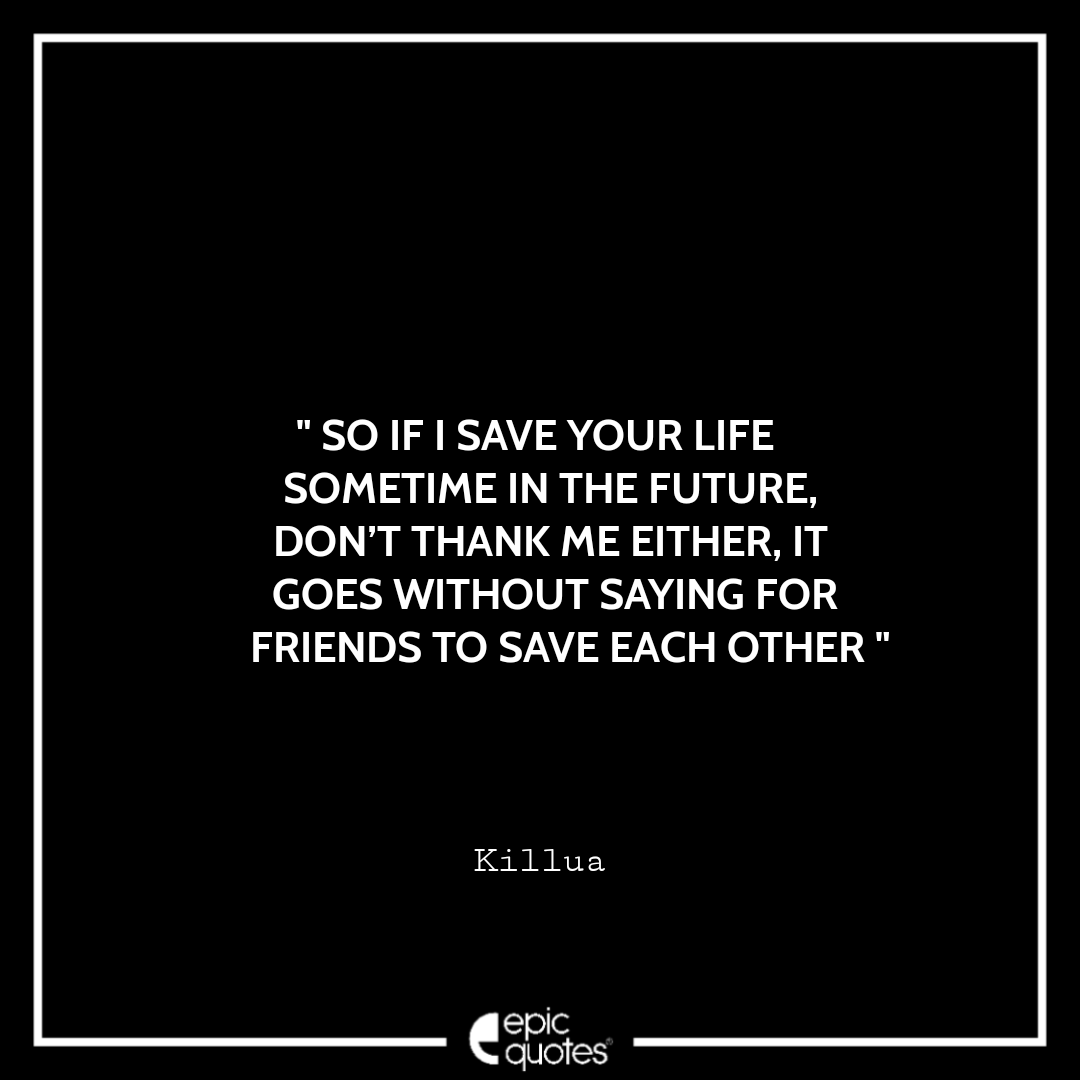 13 So if I save your life sometime in the future, don’t thank me either, It goes without saying for friends to save each other. -Killua