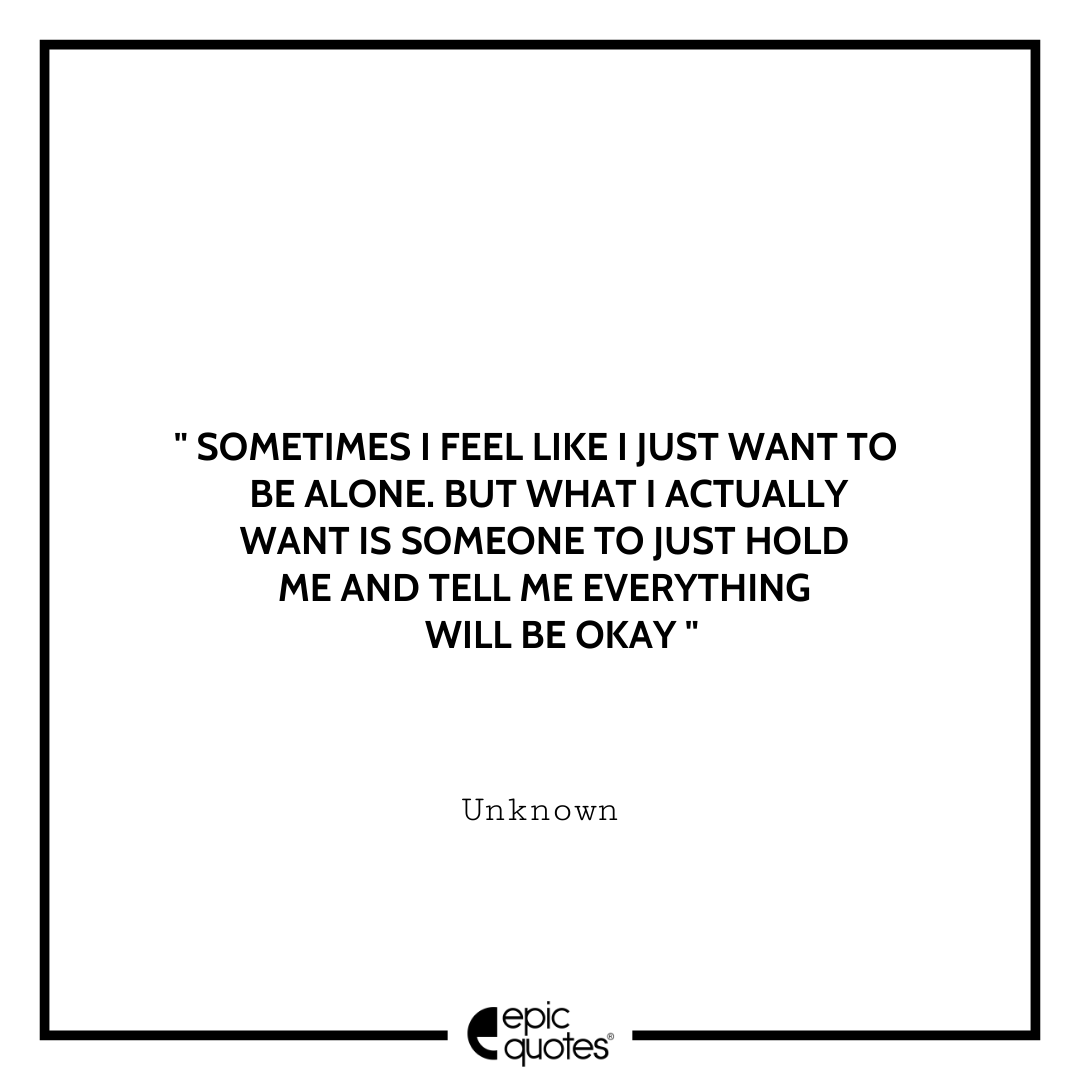 9 Sometimes I feel like I just want to be alone. But what I actually want is someone to just hold me and tell me everything will be okay.” – Unknown