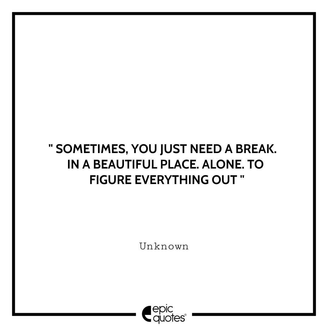 10 Sometimes, you just need a break. In a beautiful place. Alone. To figure everything out. -Unknown