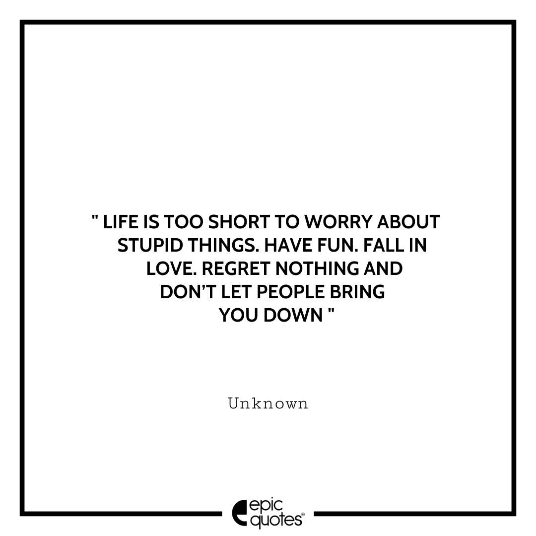 7 Life is too short to worry about stupid things. Have fun. Fall in love. Regret nothing and don’t let people bring you down. -Unknown