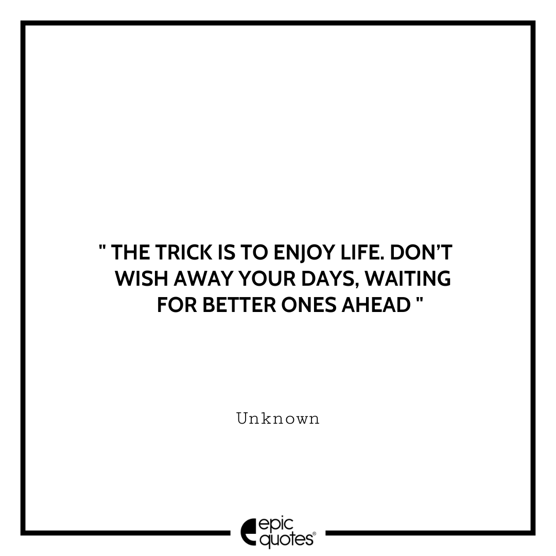 8 The trick is to enjoy life. Don’t wish away your days, waiting for better ones ahead. -Unknown
