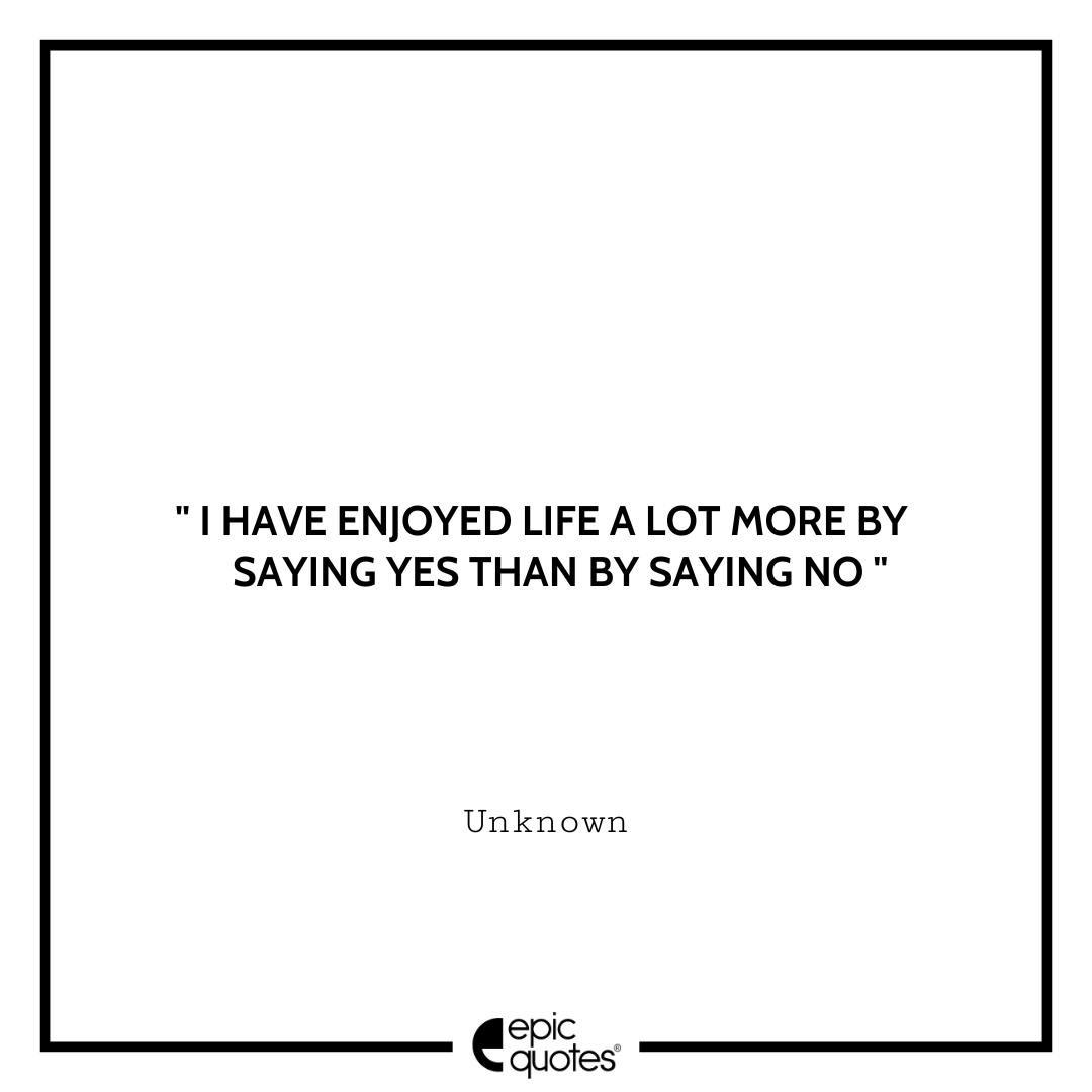 13 I have enjoyed life a lot more by saying yes than by saying no. -Unknown