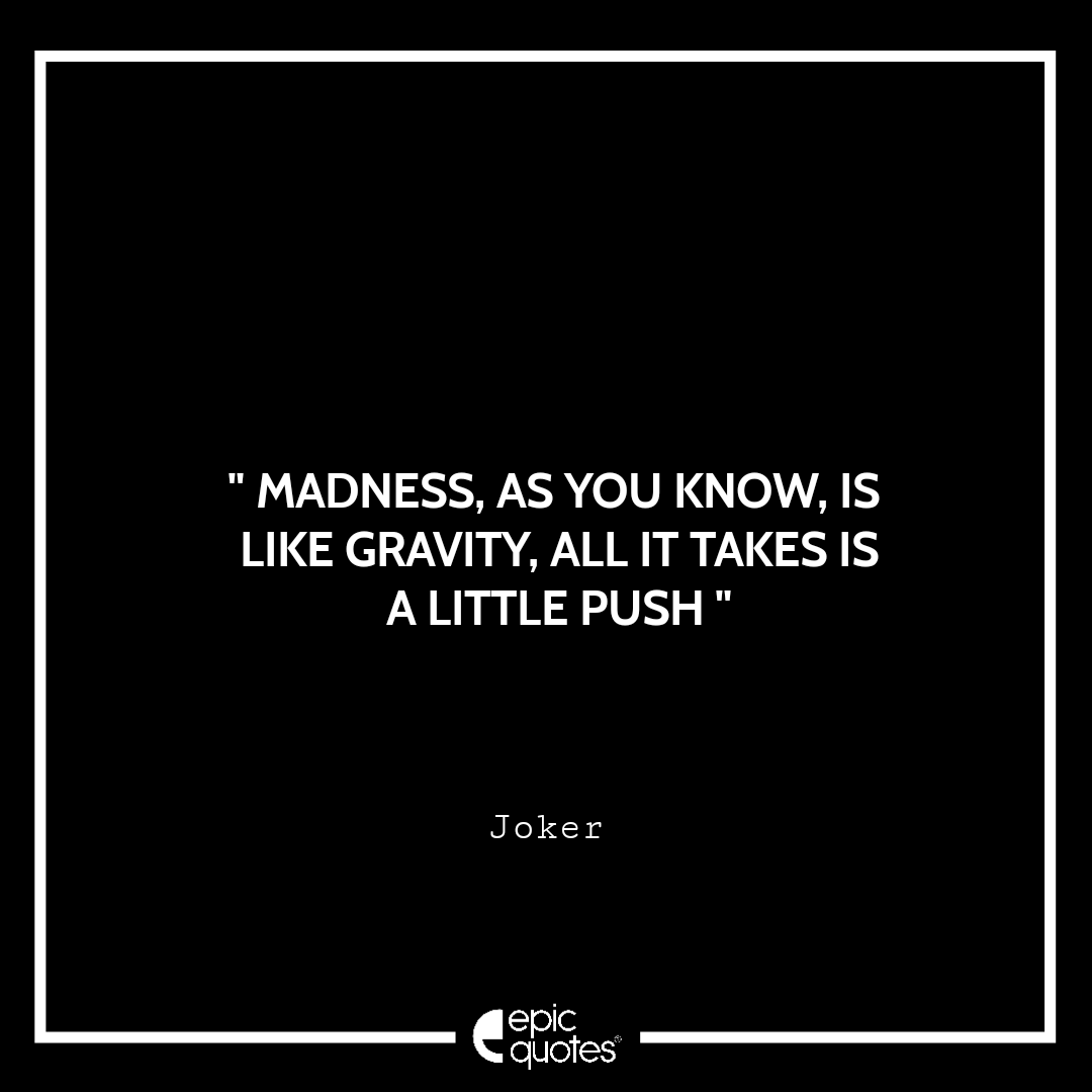 1. Madness, as you know, is like gravity, all it takes is a little push