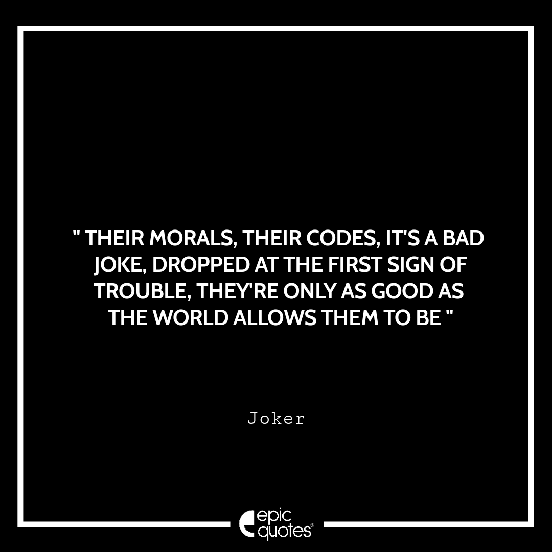 6 Their morals, their codes, it’s a bad joke. Dropped at the first sign of trouble. They’re only as good as the world allows them to be
