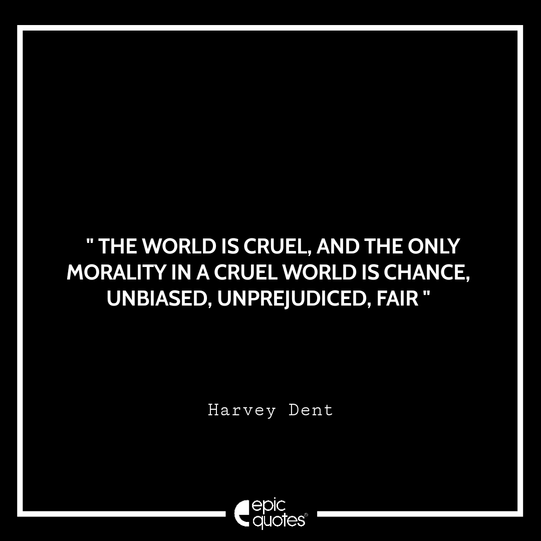 7. The world is cruel. And the only morality in a cruel world… is chance. Unbiased. Unprejudiced. Fair