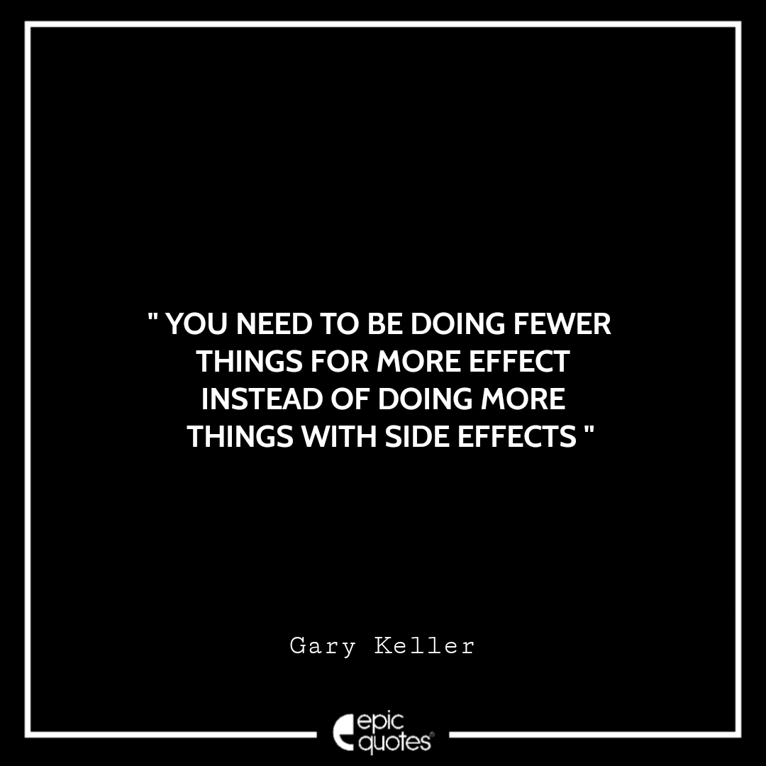 1 You need to be doing fewer things for more effect instead of doing more things with side effects. -Gary Keller