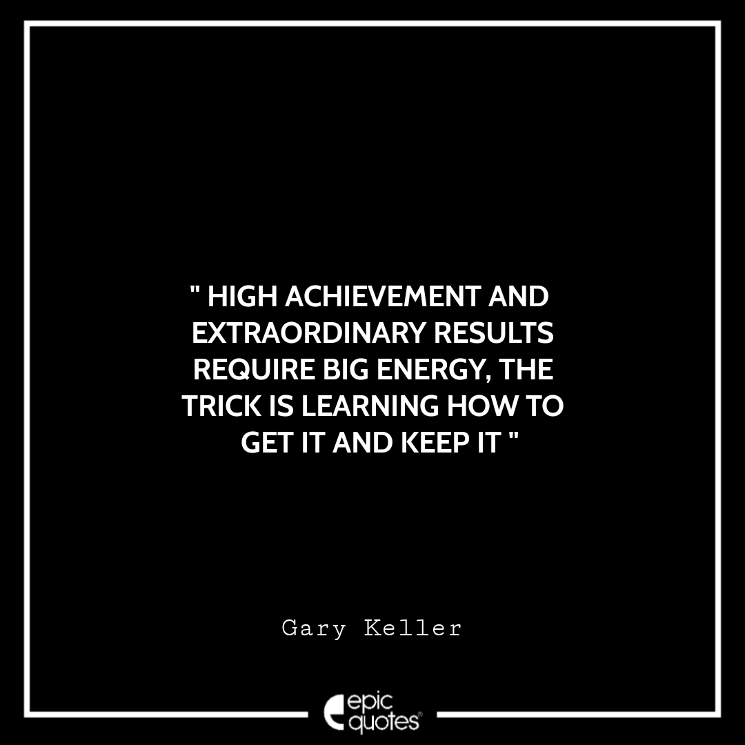 7. High achievement and extraordinary results require big energy, The trick is learning how to get it and keep it. -Gary Keller