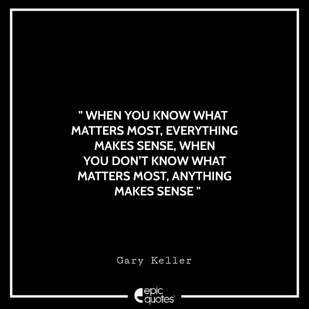 10. When you know what matters most, everything makes sense, when you don’t know what matters most, anything makes sense. -Gary Keller
