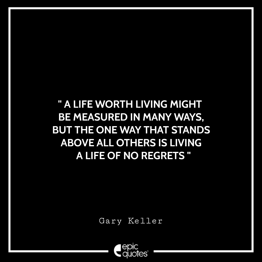 11. A life worth living might be measured in many ways, but the one way that stands above all others is living a life of no regrets. -Gary Keller
