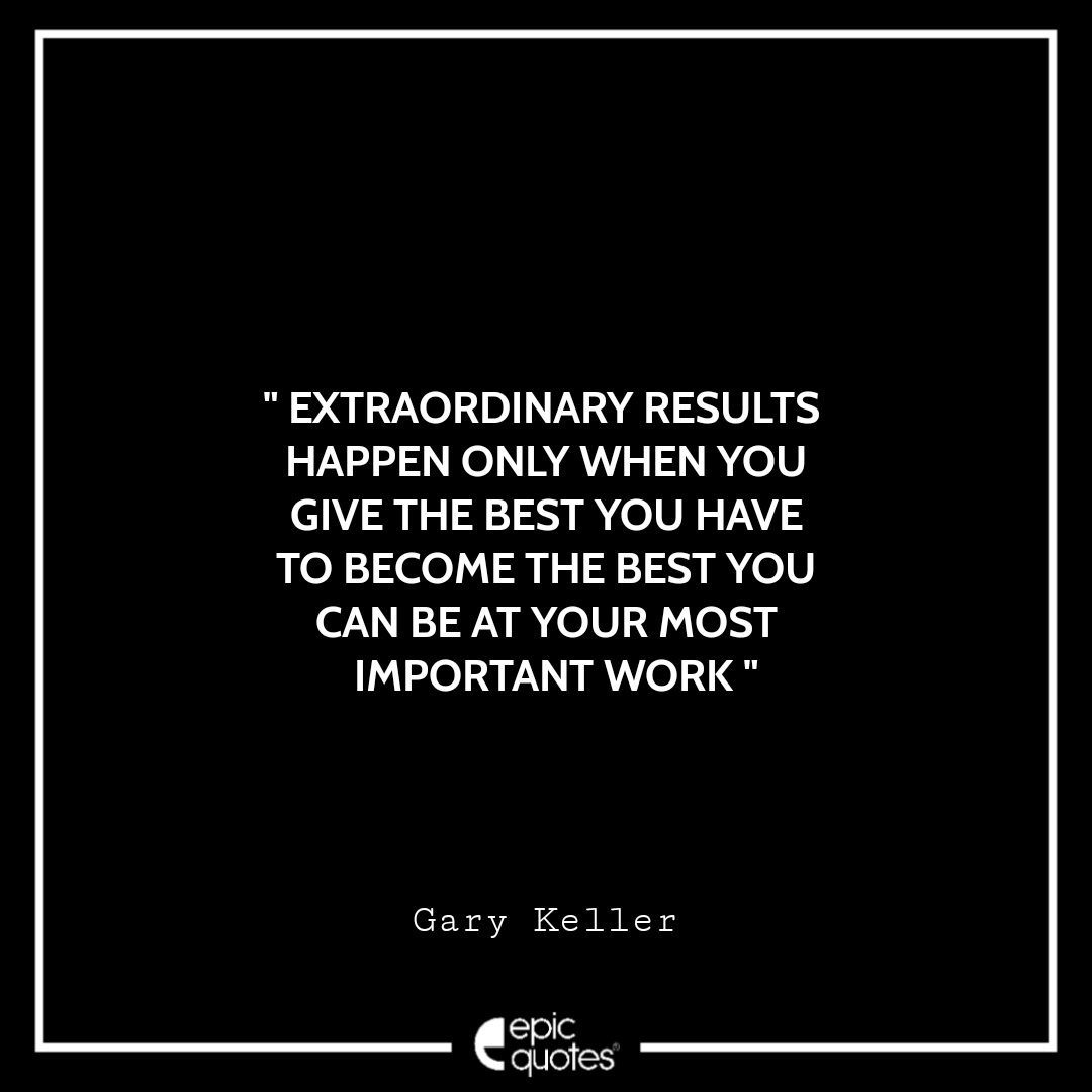 13. Extraordinary results happen only when you give the best you have to become the best you can be at your most important work. -Gary Keller