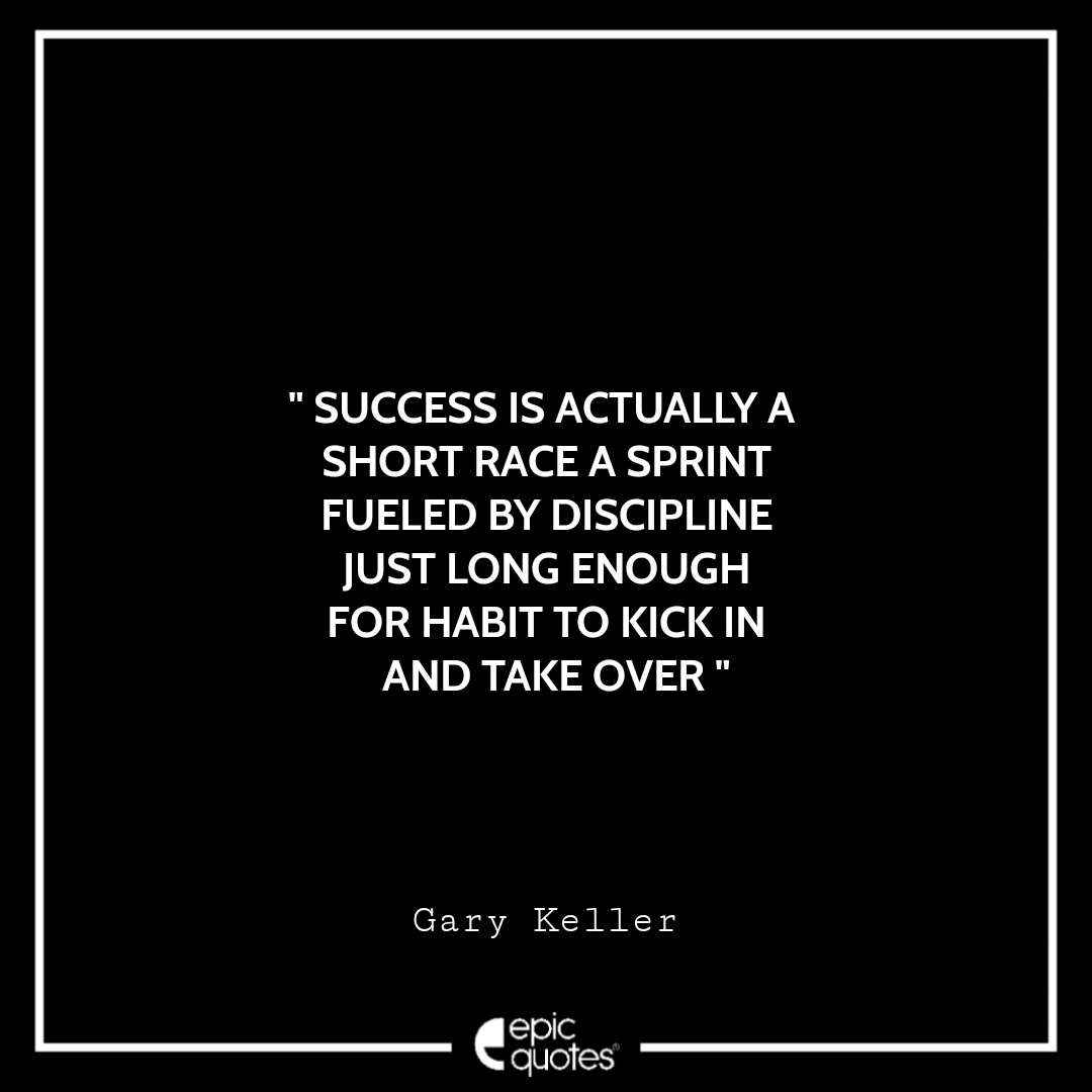 14. Success is actually a short race a sprint fueled by discipline just long enough for habit to kick in and take over. -Gary Keller