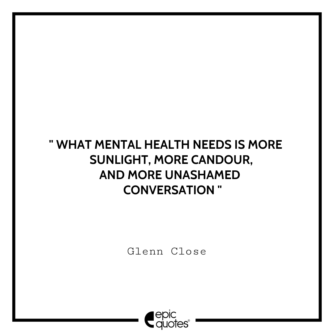 10 What mental health needs is more sunlight, more candour, and more unashamed conversation.” — Glenn Close