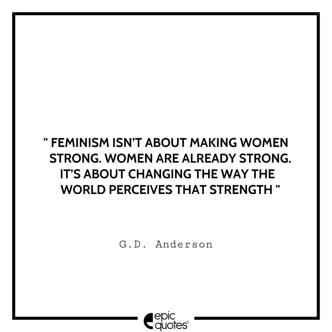 1. Feminism isn’t about making women strong. Women are already strong. It’s about changing the way the world perceives that strength. -G.D. Anderson