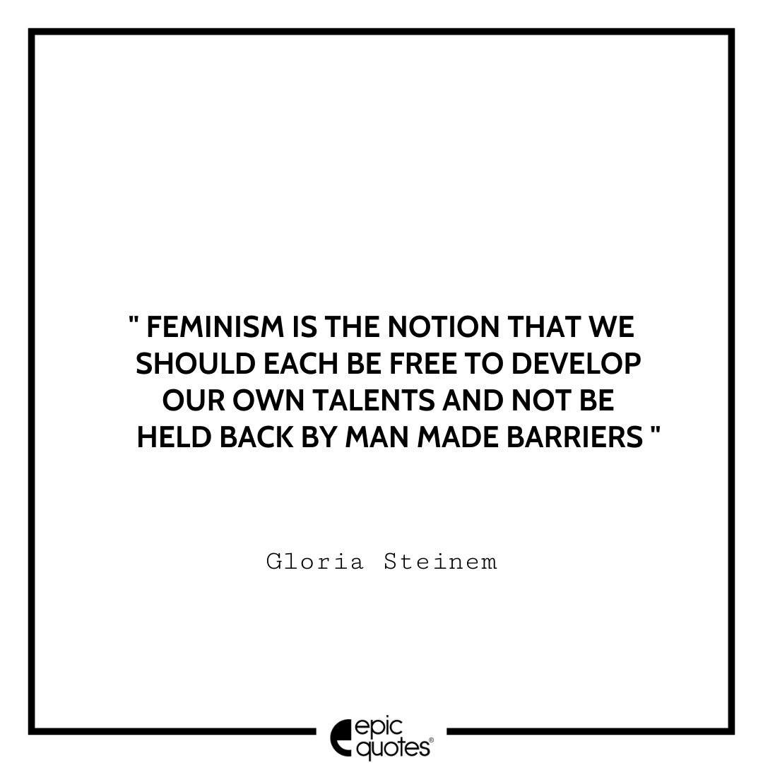 2. Feminism is the notion that we should each be free to develop our own talents and not be held back by man made barriers. -Gloria Steinem