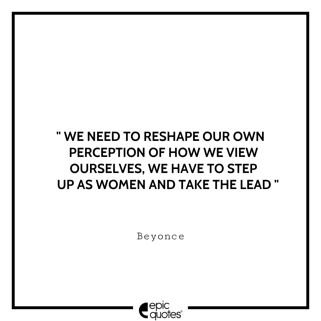 6 We need to reshape our own perception of how we view ourselves, We have to step up as women and take the lead. -Beyonce