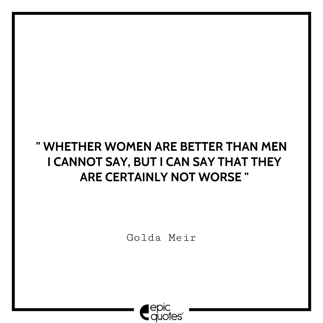 11 Whether women are better than men I cannot say, but I can say that they are certainly not worse. -Golda Meir