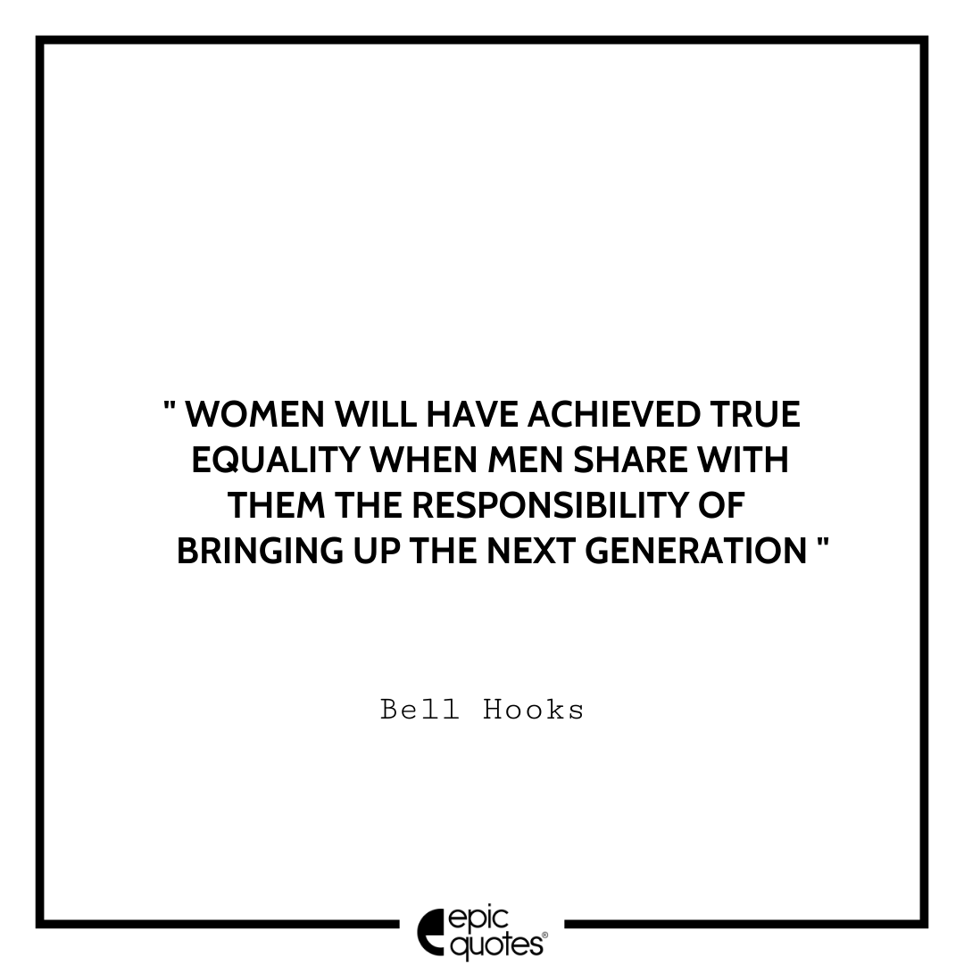 13 Women will have achieved true equality when men share with them the responsibility of bringing up the next generation. -Bell Hooks