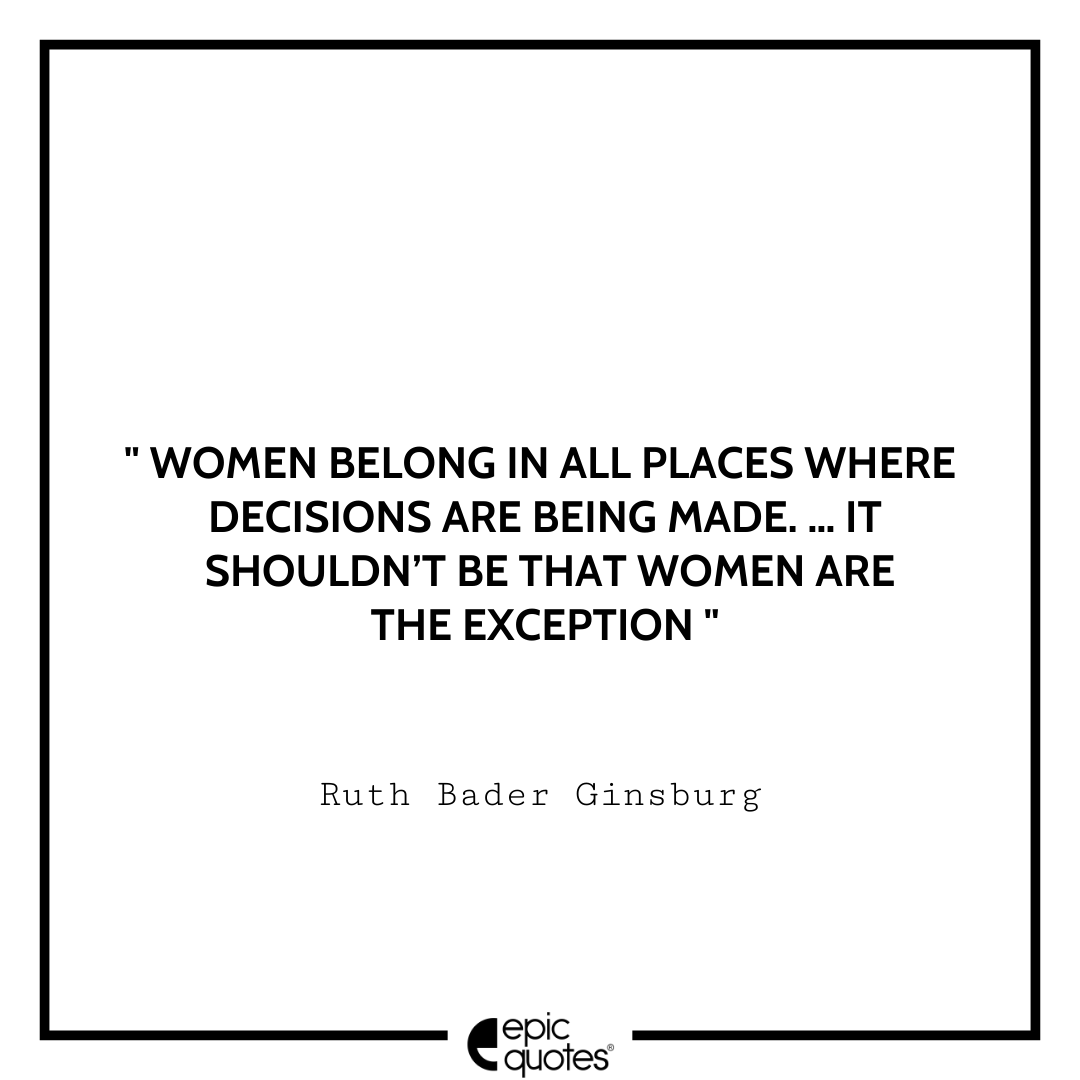 15. Women belong in all places where decisions are being made. … It shouldn’t be that women are the exception. -Ruth Bader Ginsburg