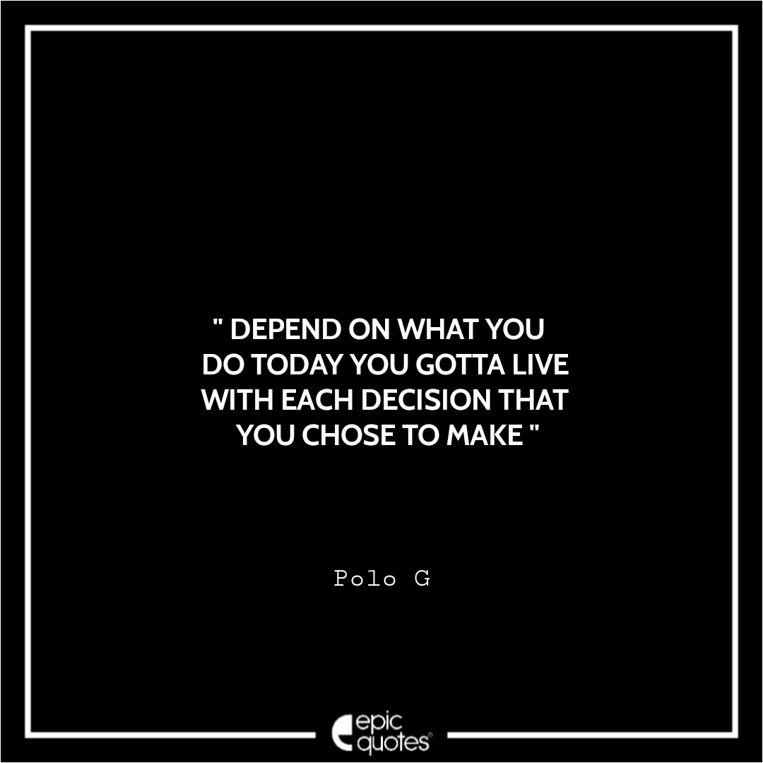4. Depend on what you do today you gotta live with each decision that you chose to make. -Polo G