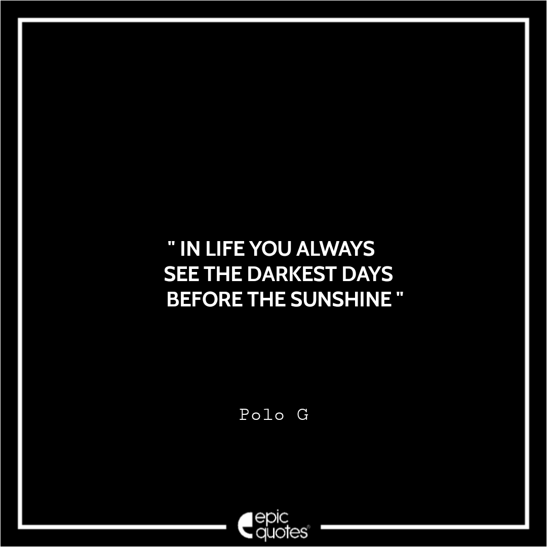6 In life you always see the darkest days before the sunshine. -Polo G