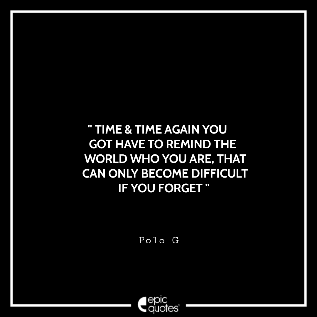 7. Time & time again you got have to remind the world who you are, That can only become difficult if you forget. -Polo G