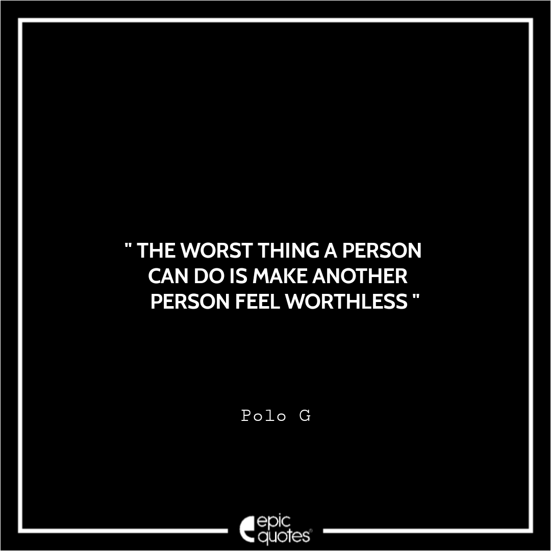 9. The worst thing a person can do is make another person feel worthless. -Polo G