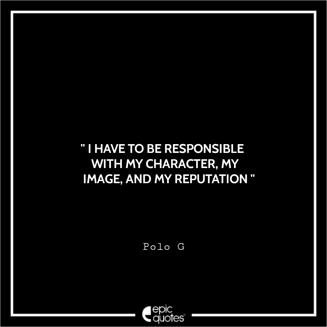 10 I have to be responsible with my character, my image, and my reputation. -Polo G