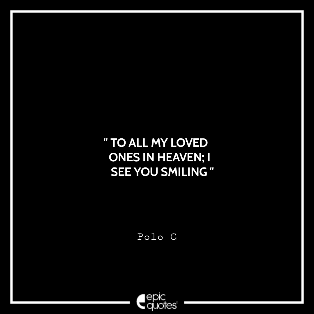 11. To all my loved ones in heaven; I see you smiling. -Polo G