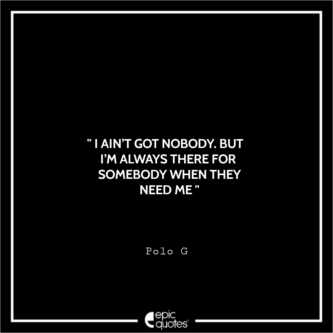 13 I ain’t got nobody. But I’m always there for somebody when they need me. -Polo G