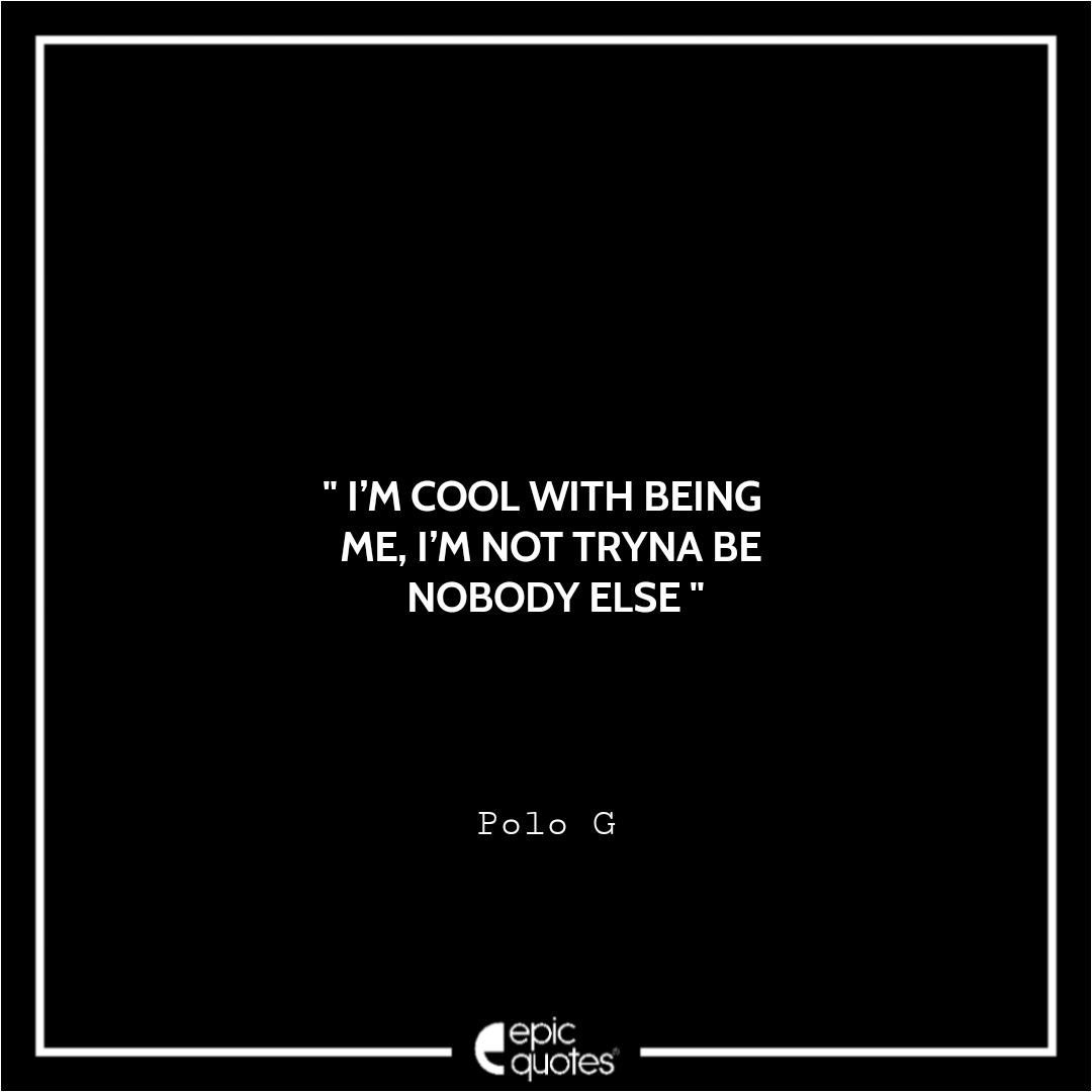 14 I’m cool with being me, I’m not tryna be nobody else. -Polo G