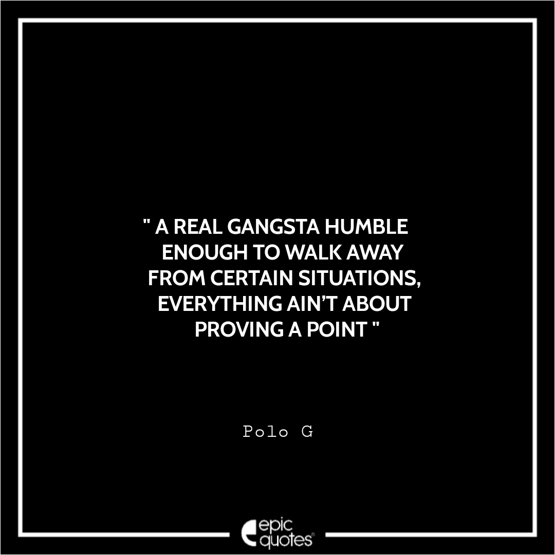 15 A real gangsta humble enough to walk away from certain situations, everything ain’t about proving a point. -Polo G