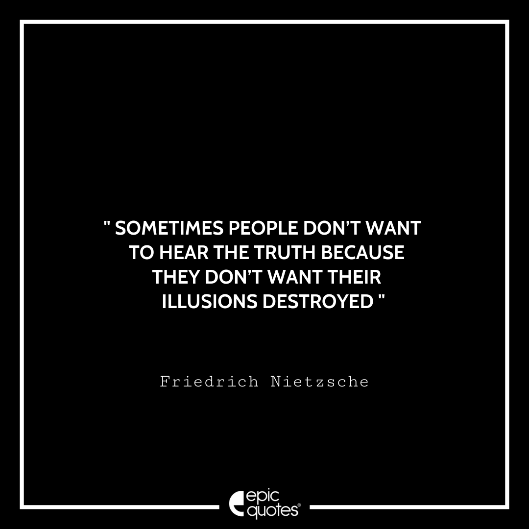 2. Sometimes people don’t want to hear the truth because they don’t want their illusions destroyed. -Friedrich Nietzsche