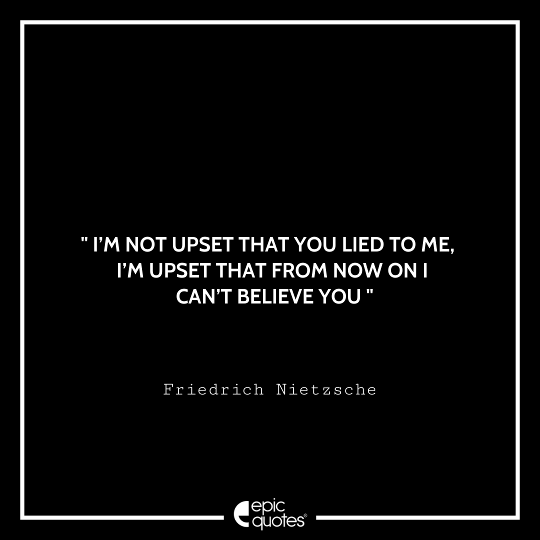 4 I’m not upset that you lied to me, I’m upset that from now on I can’t believe you. -Friedrich Nietzsche
