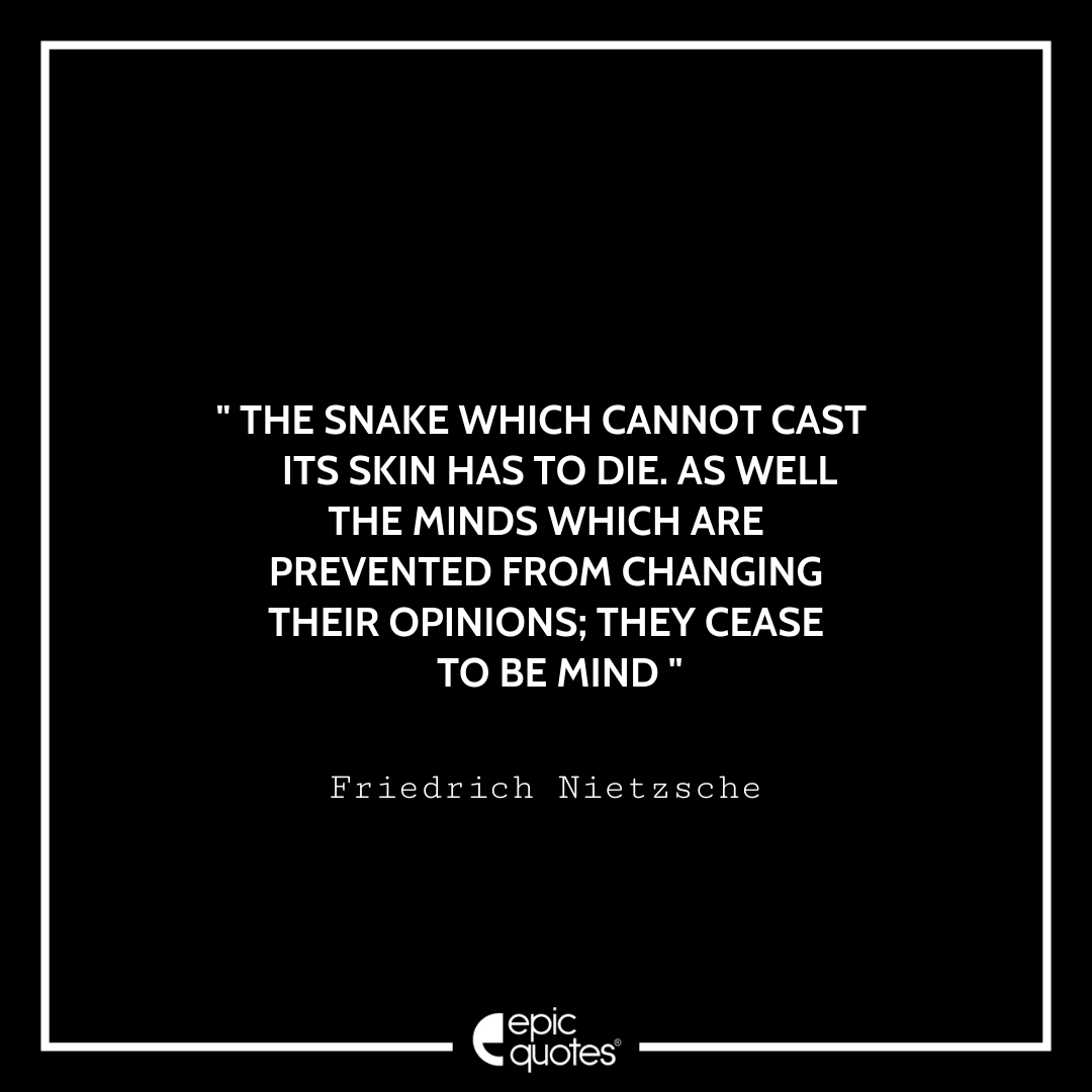 6. The snake which cannot cast its skin has to die. As well the minds which are prevented from changing their opinions; they cease to be mind. -Friedrich Nietzsche
