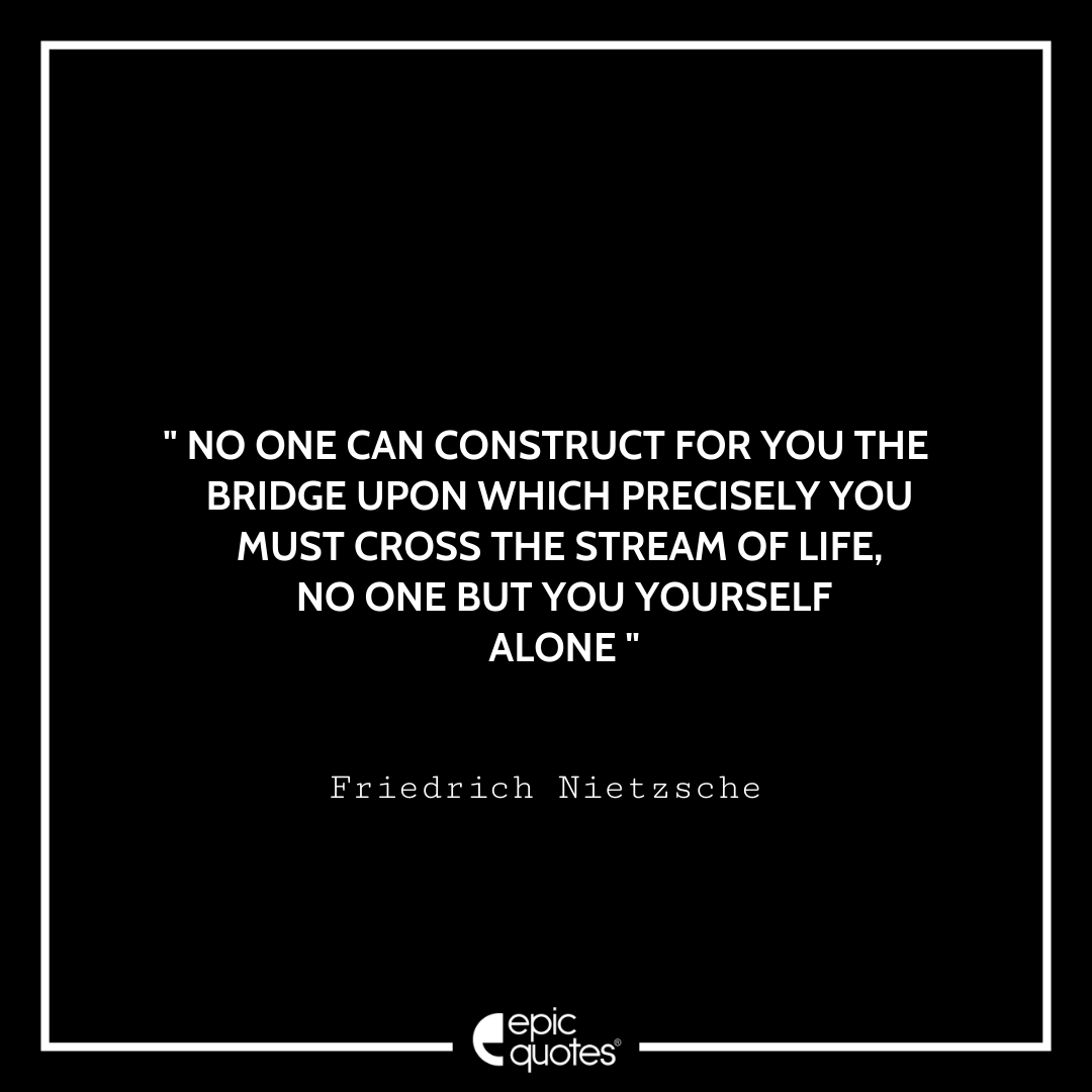 7. No one can construct for you the bridge upon which precisely you must cross the stream of life, no one but you yourself alone. -Friedrich Nietzsche